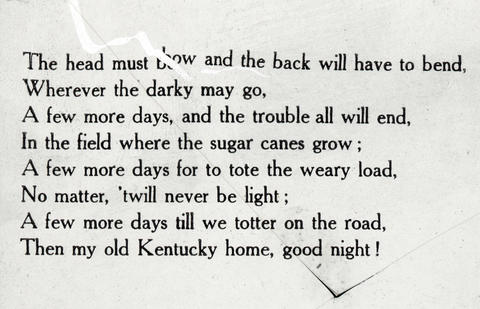 Lantern slide with lyrics to "Old Kentucky Home", slide 2.