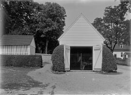 A black and white photograph taken of the coach house at Mt. Vernon.