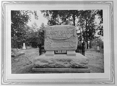A black and white photograph taken of the gravesite of Nancy Hanks Lincoln, the mother of Abraham Lincoln.